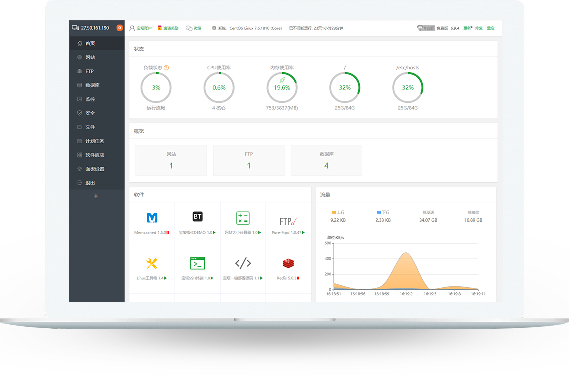 1. 117数据云服务器推存使用宝塔面板一键部署服务器,快速稳定。